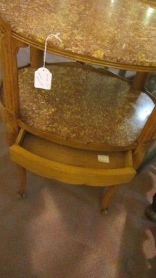 SKU: AS170 French Walnut Marble surfaced 2 Tier Etagere with drawer. Stamped -Armunde.