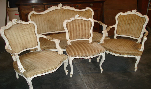 SKU: AT029 19th Century French Beech Painted 1 of 4 Piece Salon Suite in Louis XVth Style c.1890. All chairs now sold. Sofa only.