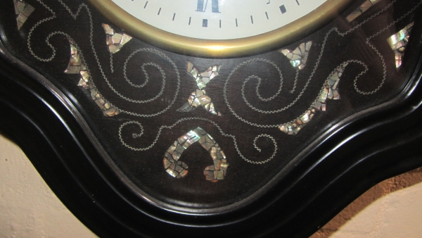 SKU: AT1007c 19th century french vineyard clock with mother of pearl and pewter inlay. c.1880 Enquiry