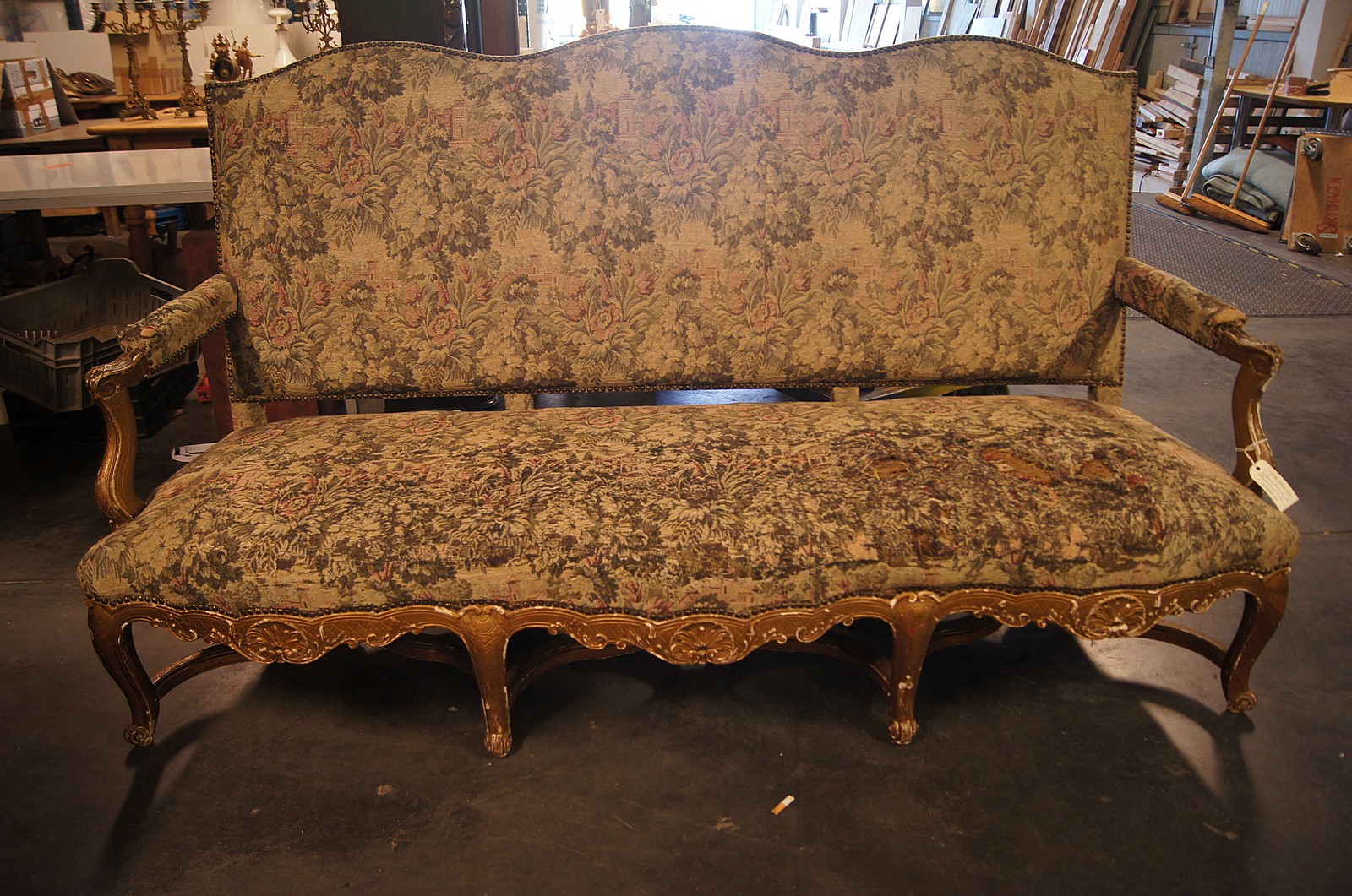 French Regence Style Gilt Shabby Chic Sofa/Settee with cabriole legs and scrolled feet. c.1890