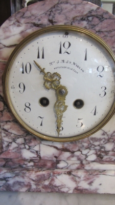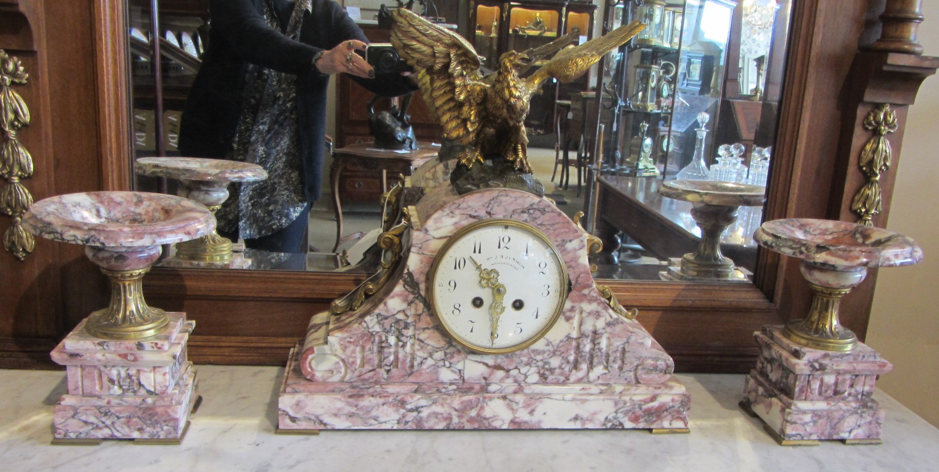 A lovely marble French clock decorated with a gilded bronze eagle and gilt mounts.c.1910 Movement unrestored.