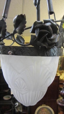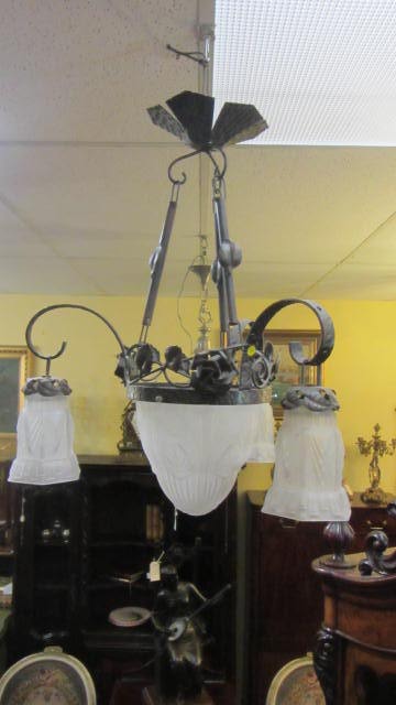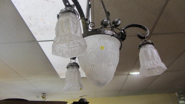 SKU: AU072 French Art Deco Light Fitting with Central Light and 3 Branch Lights. Lovely Shades. Price when wired. Enquiry