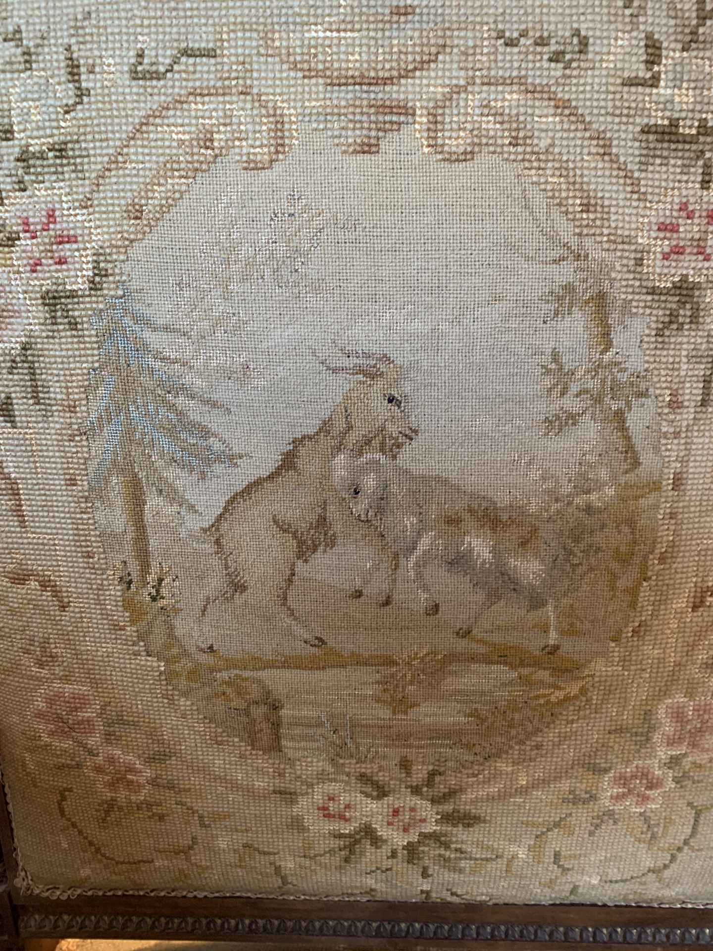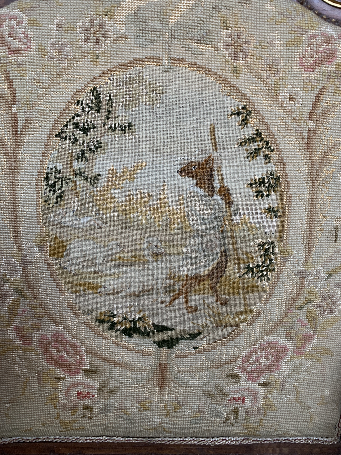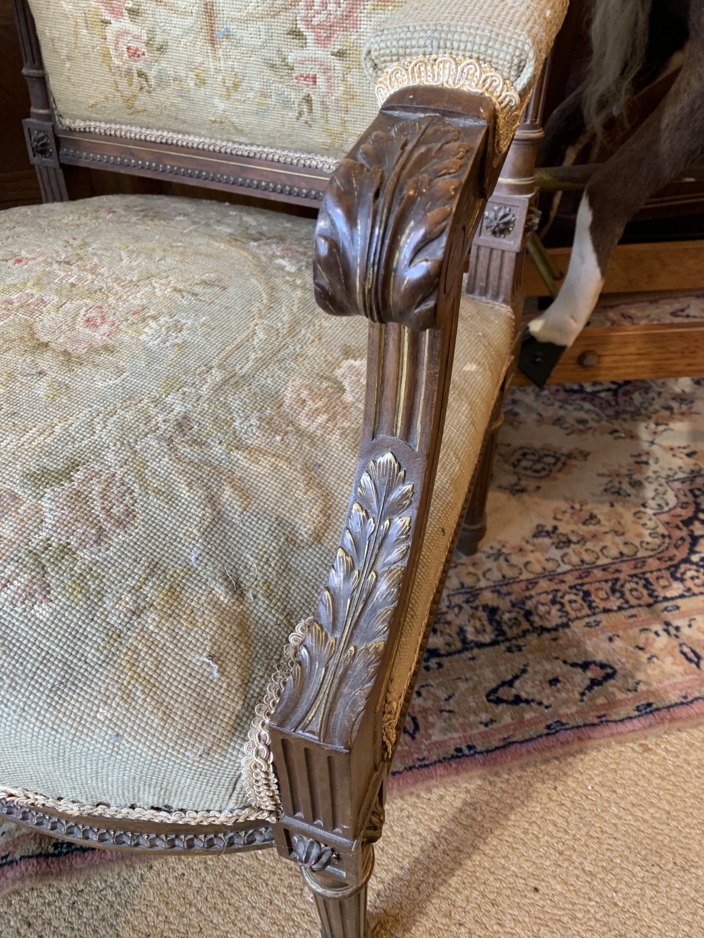 Pair of french Louis XVI style walnut and tapestry fauteuils / armchairs. c.1890.