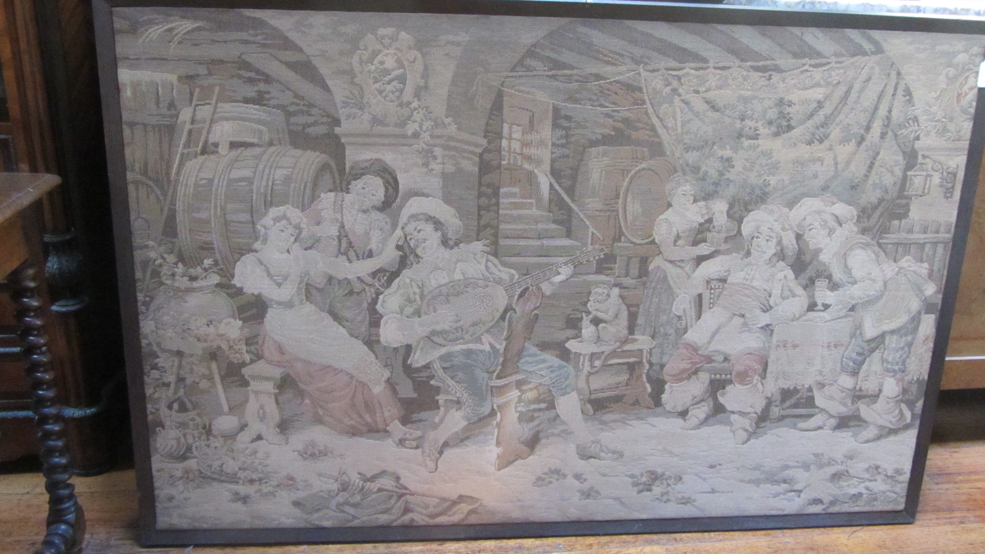 SKU: ZZ2615 Framed tapestry of an early tavern scene. c.1900 Enquiry