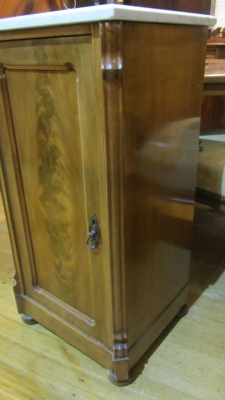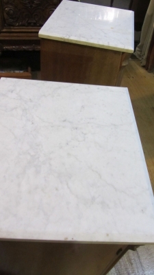 SKU: ZZ2649 Pair of mahogany bedside cabinets with flame mahogany panels and marble tops. c.1890 Equiry Now
