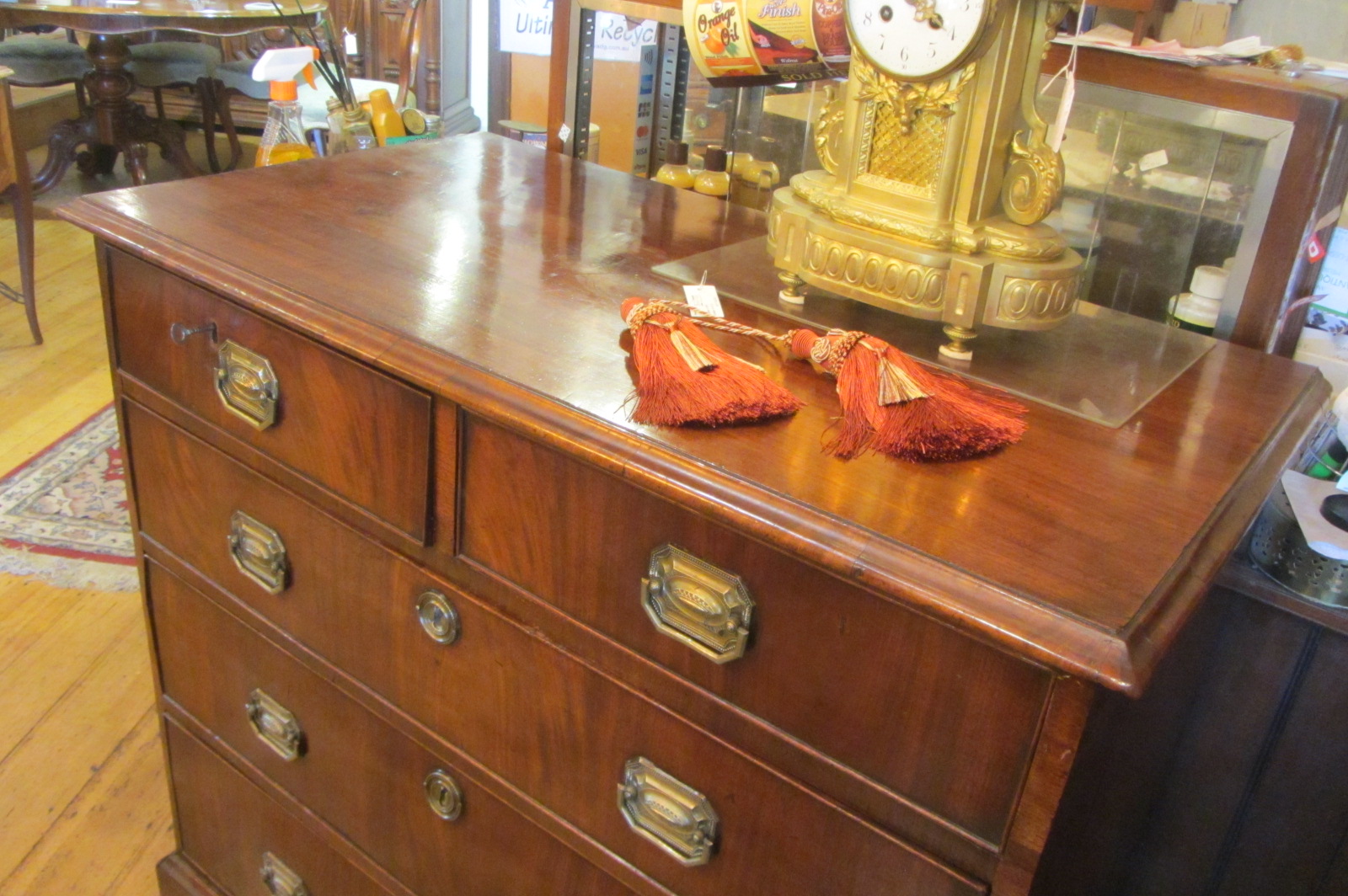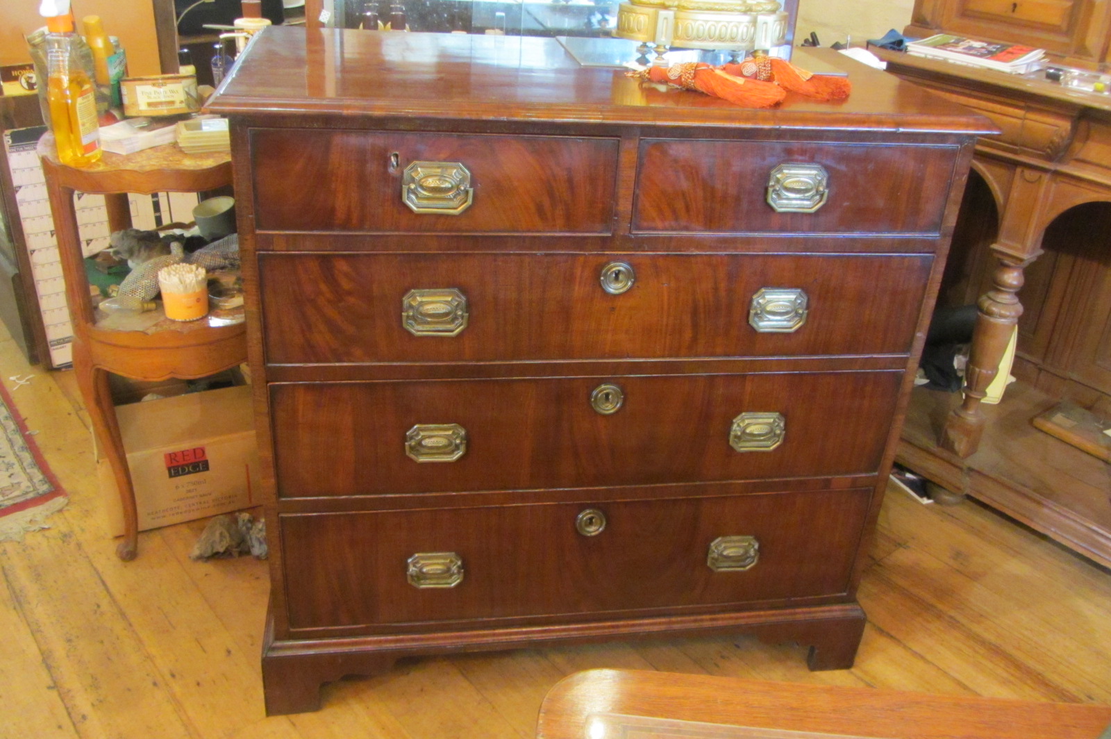 George III mahogany 5 drawer chest of drawers with brass handles. c.1800