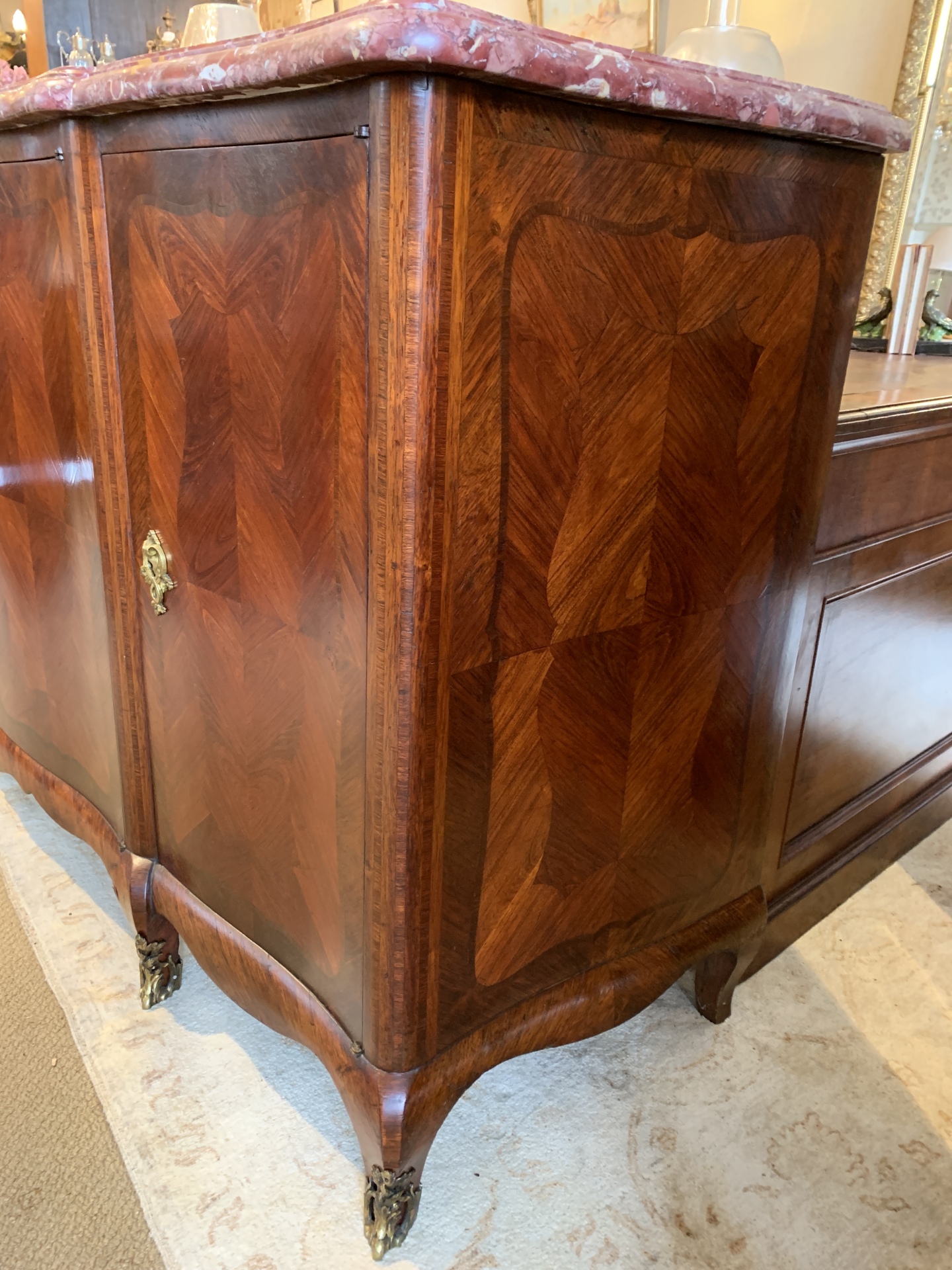 French Empire style palisander 4 door buffet / sideboard with a lovely shaped marble top and quality ormolu mounts. c.1890 Length-205cm depth-6-cm height-106cm