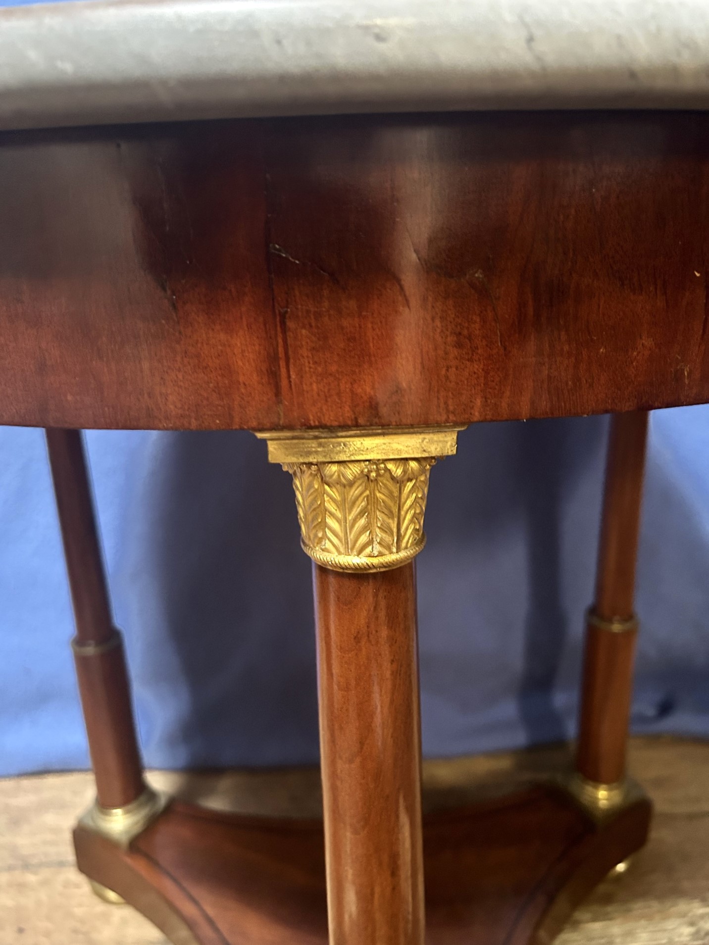 French 2nd Empire circular mahogany marble top table (Gueridon) with ormolu mounts. c.1850  H-75cm Diameter-74cm