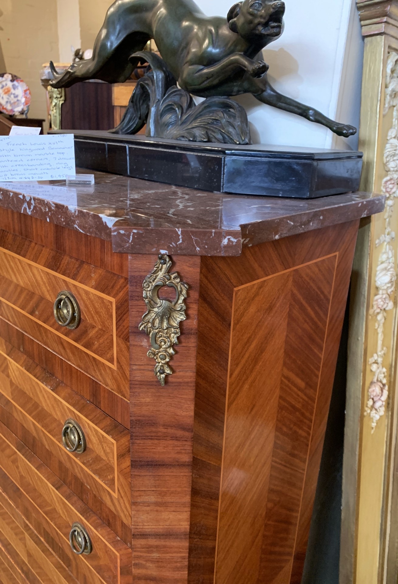 , cantered corners, 7 drawers with cross banding, ring handles and gilt brass mounts. c.1930