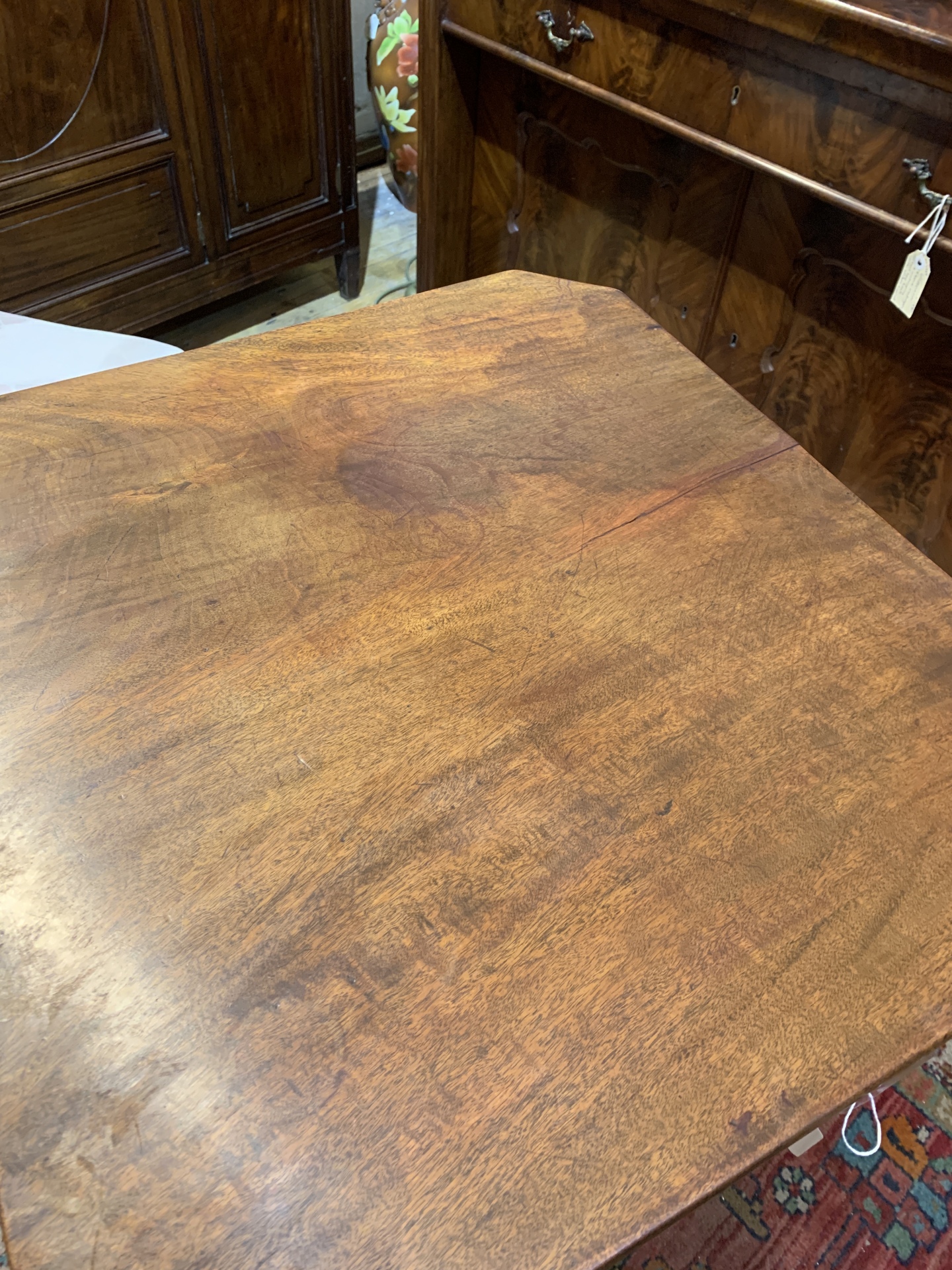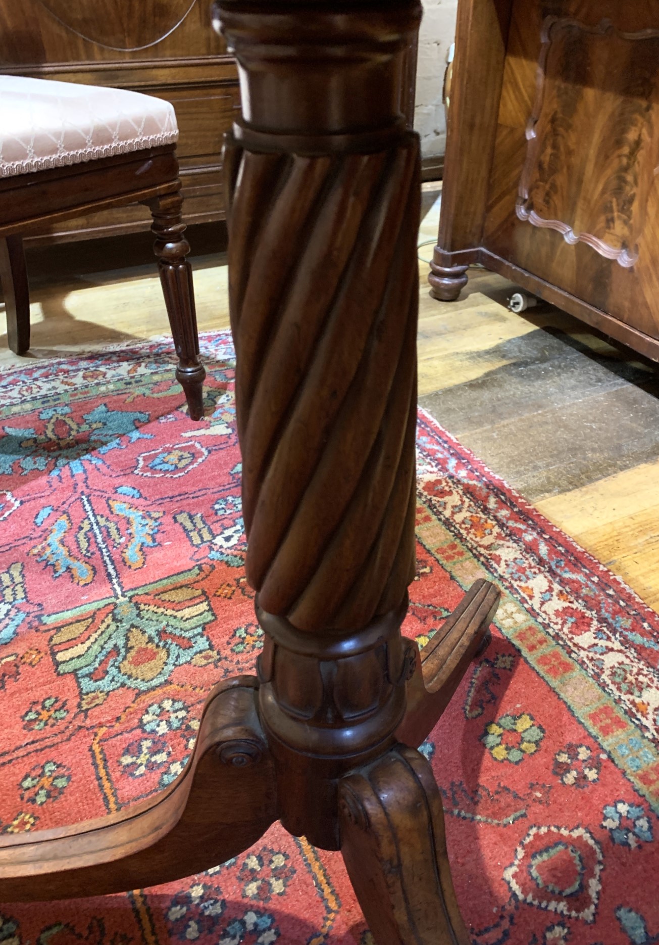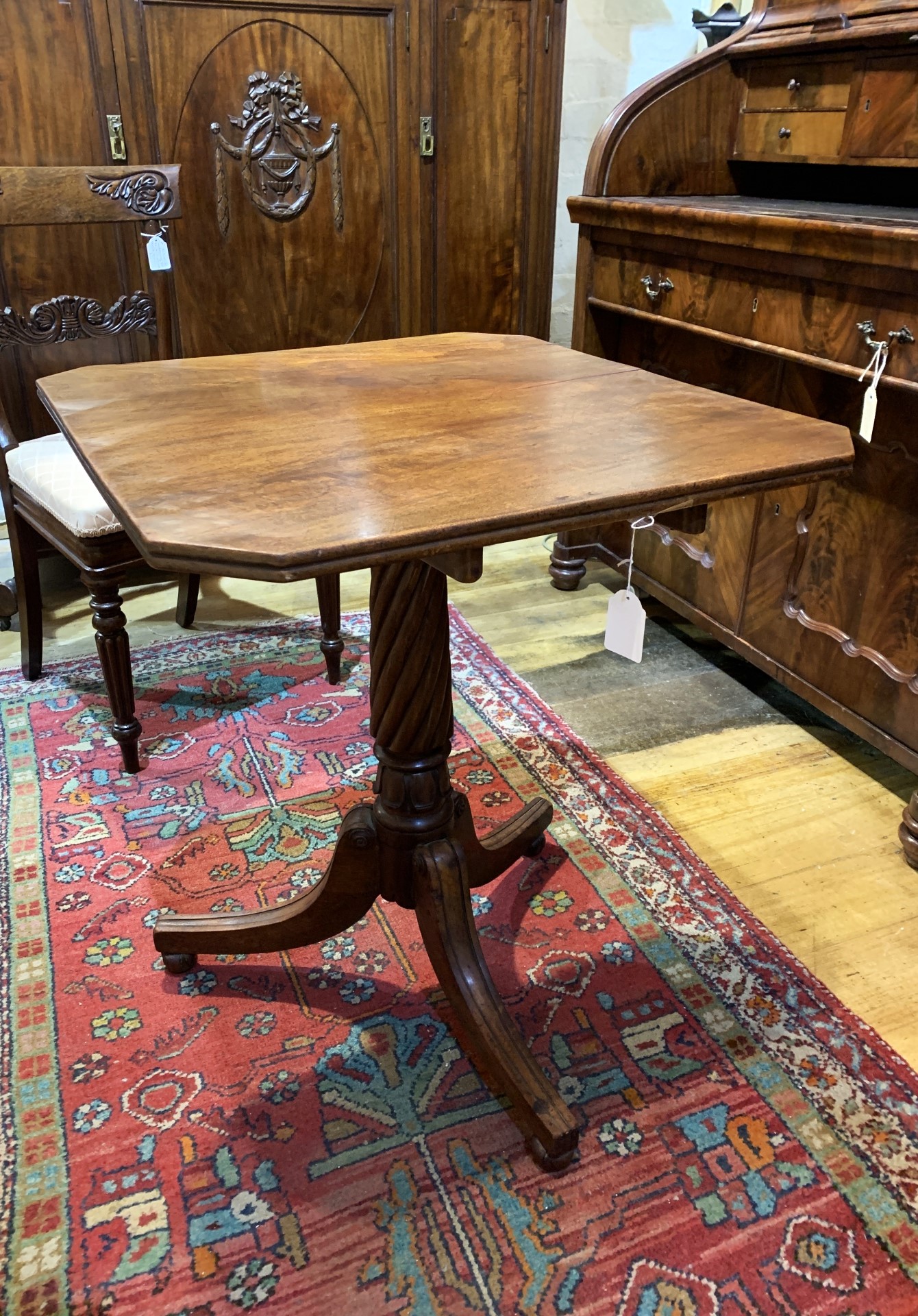 Late Georgian Mahogany tilt top wine table on central fluted column and three splay legs. c.1830