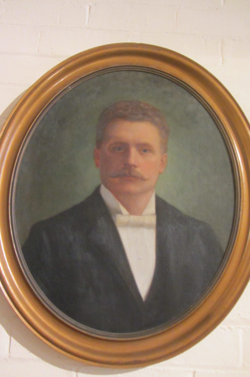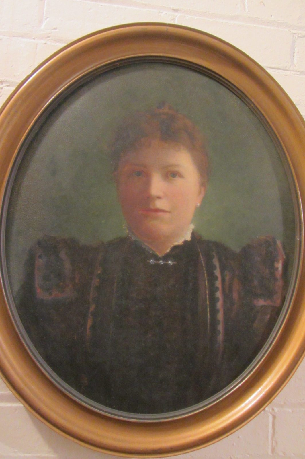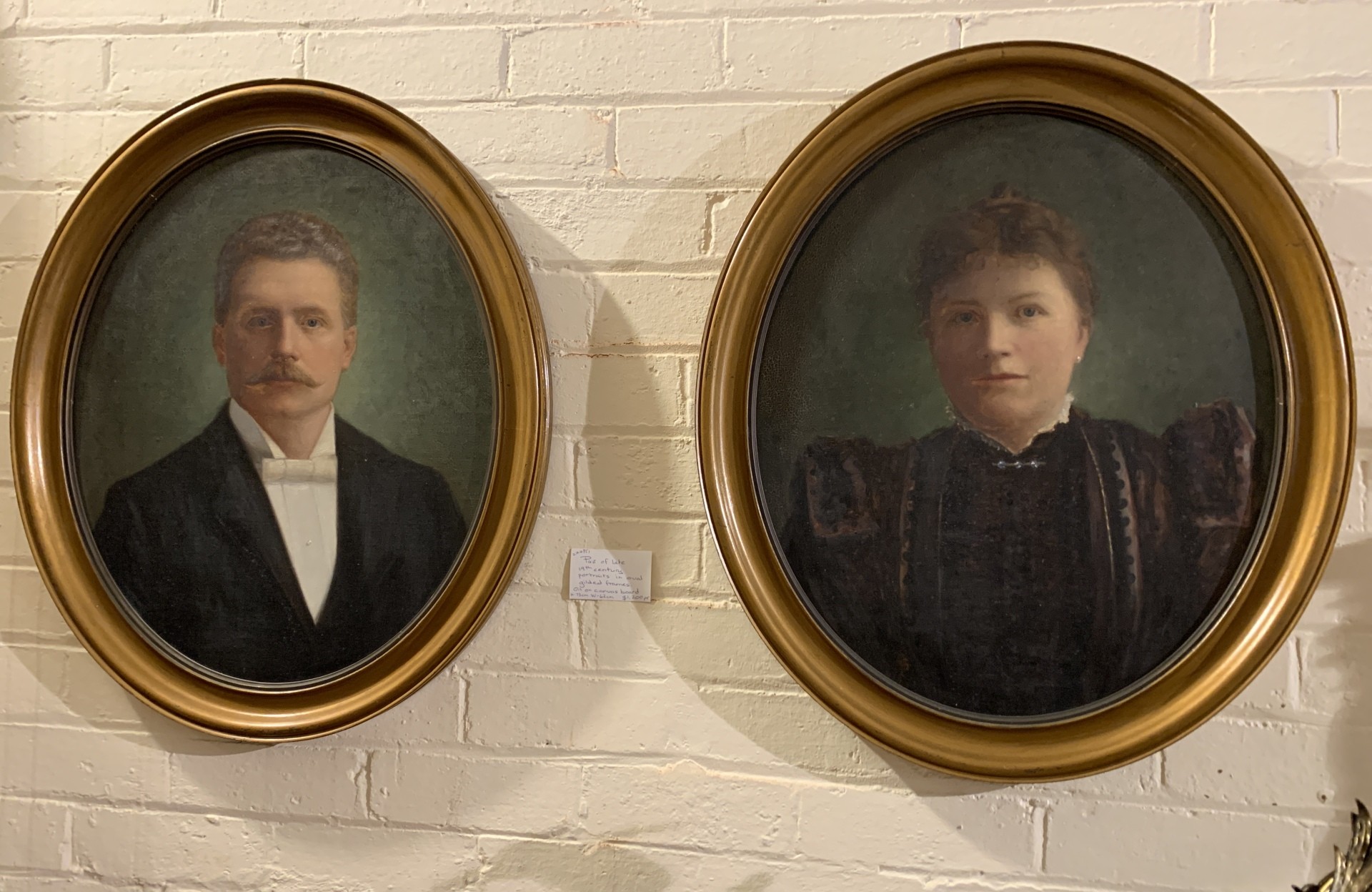 Pair of Late 19th century portraits in oval gilded frames.  Oil on canvas board.