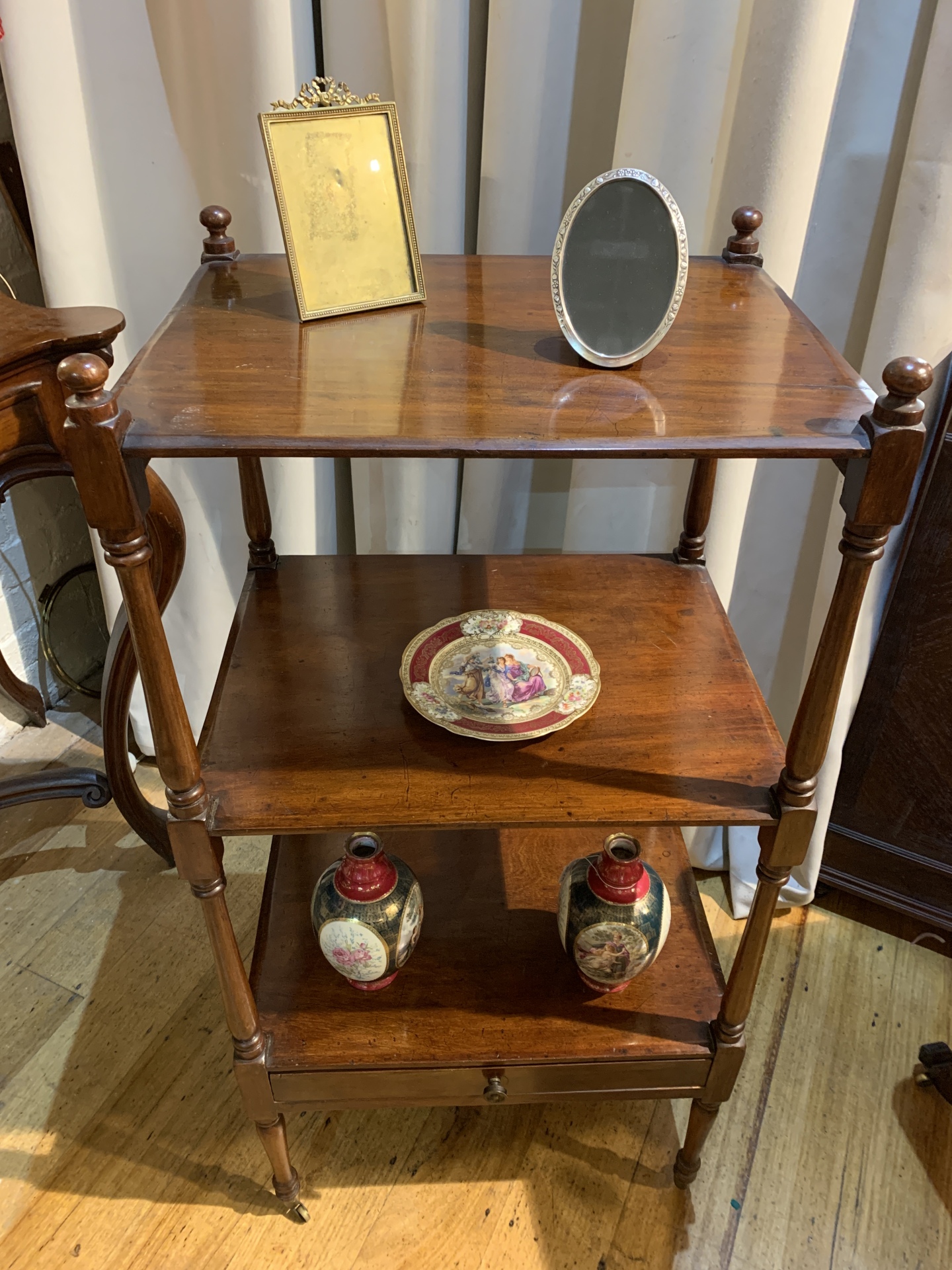 Very Elegant Late Georgian 3 tier whatnot with drawer, brass knob and castors. Height-108cm Width-54cm Depth_42cm