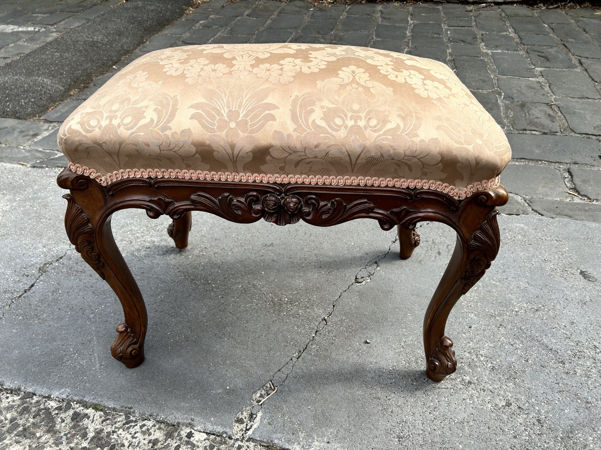 Victorian George Ii style mahogany stool. Newly upholstered. c.1900