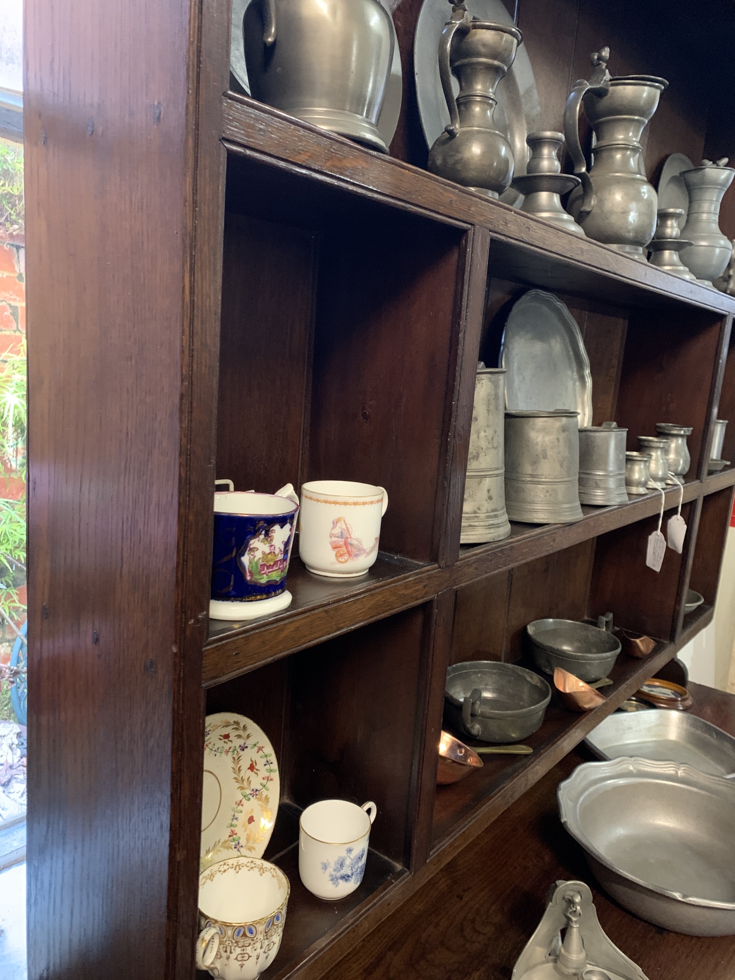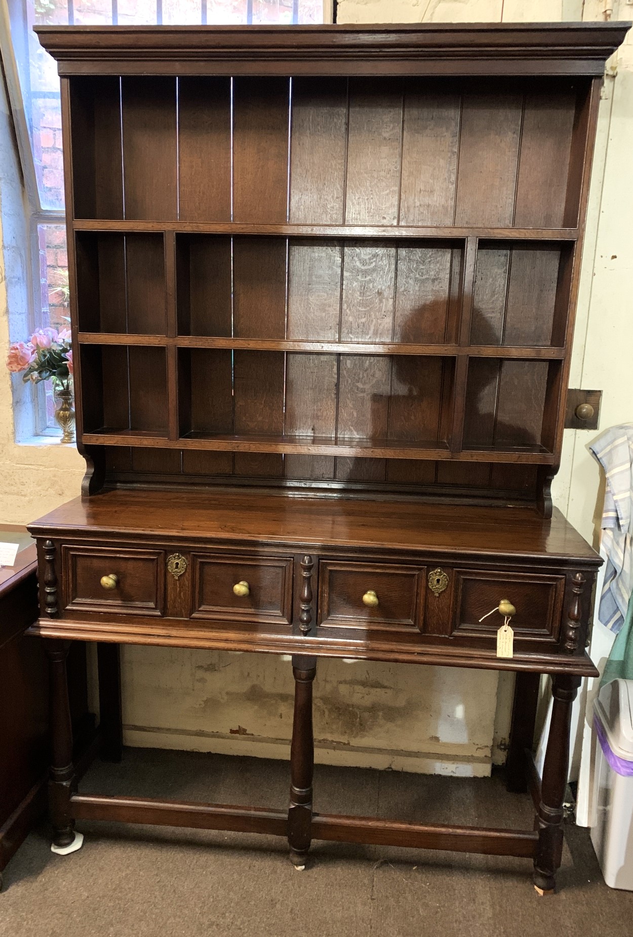 19th Century oak dresser with 2 drawers and a plate rack above.