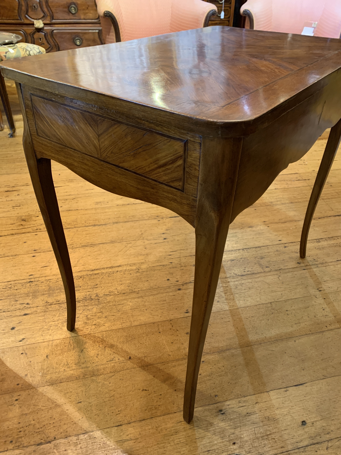 French Louis XVth style walnut 2 drawer side table with 4 square tapering legs. c.1890 H-72cm W-80cm D-48cm