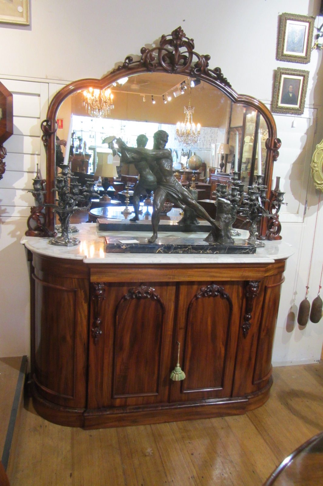 Quality Victorian mahogany marble topped credenza with mirrored back. c.1860