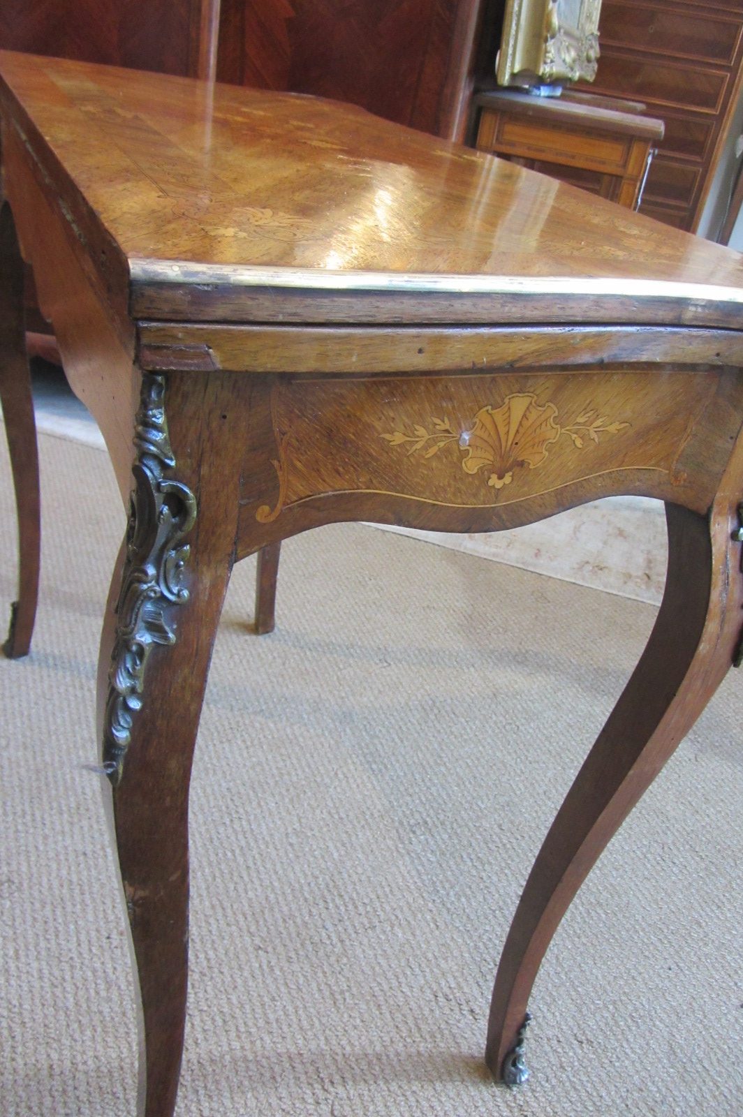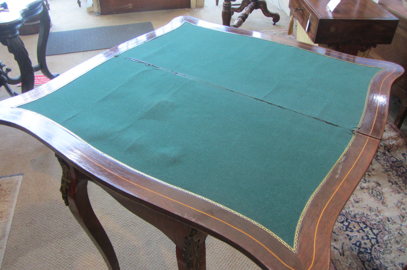 19th Century french rosewood and floral inlaid fold over card table. c.1890